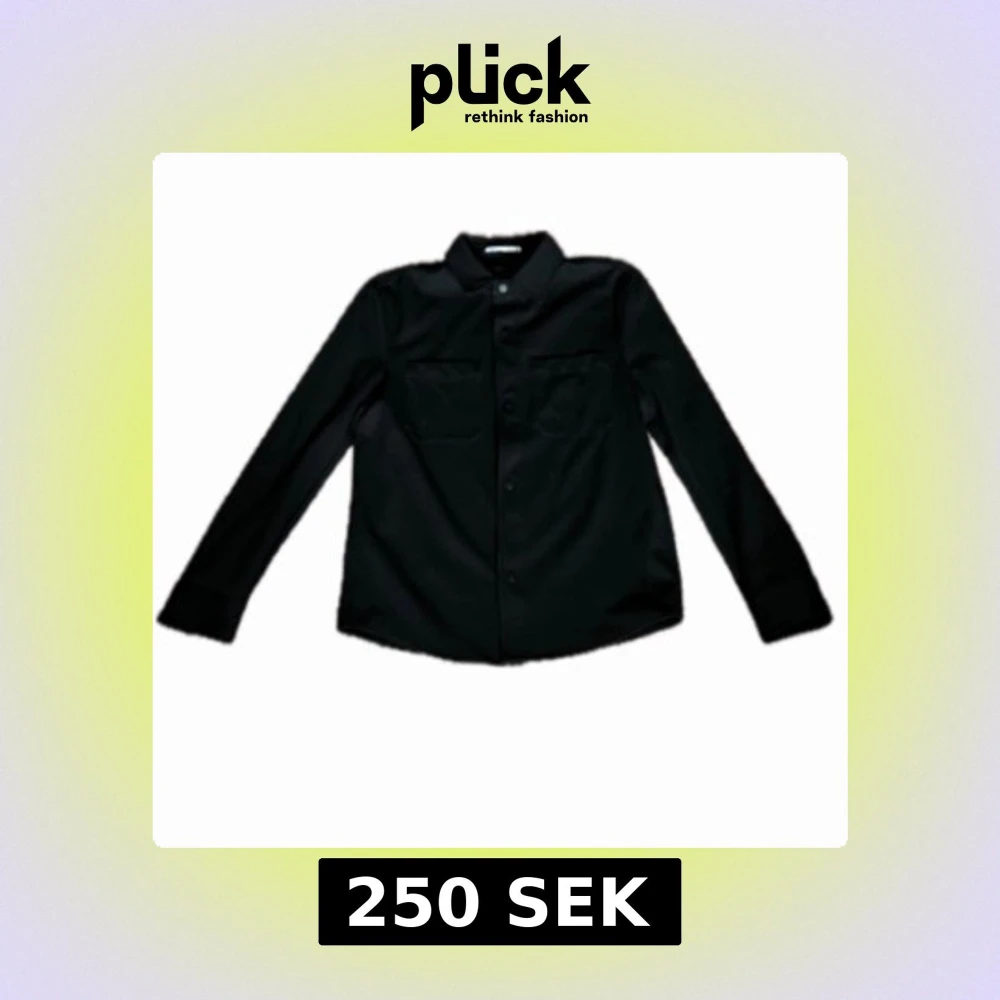 Stilren svart overshirt från Zara med klassisk krage, två bröstfickor och knäppning framtill. Skjortan har lång ärm och en rak passform, perfekt att bära som lager över t-shirt. Materialet känns mjukt och följsamt.
