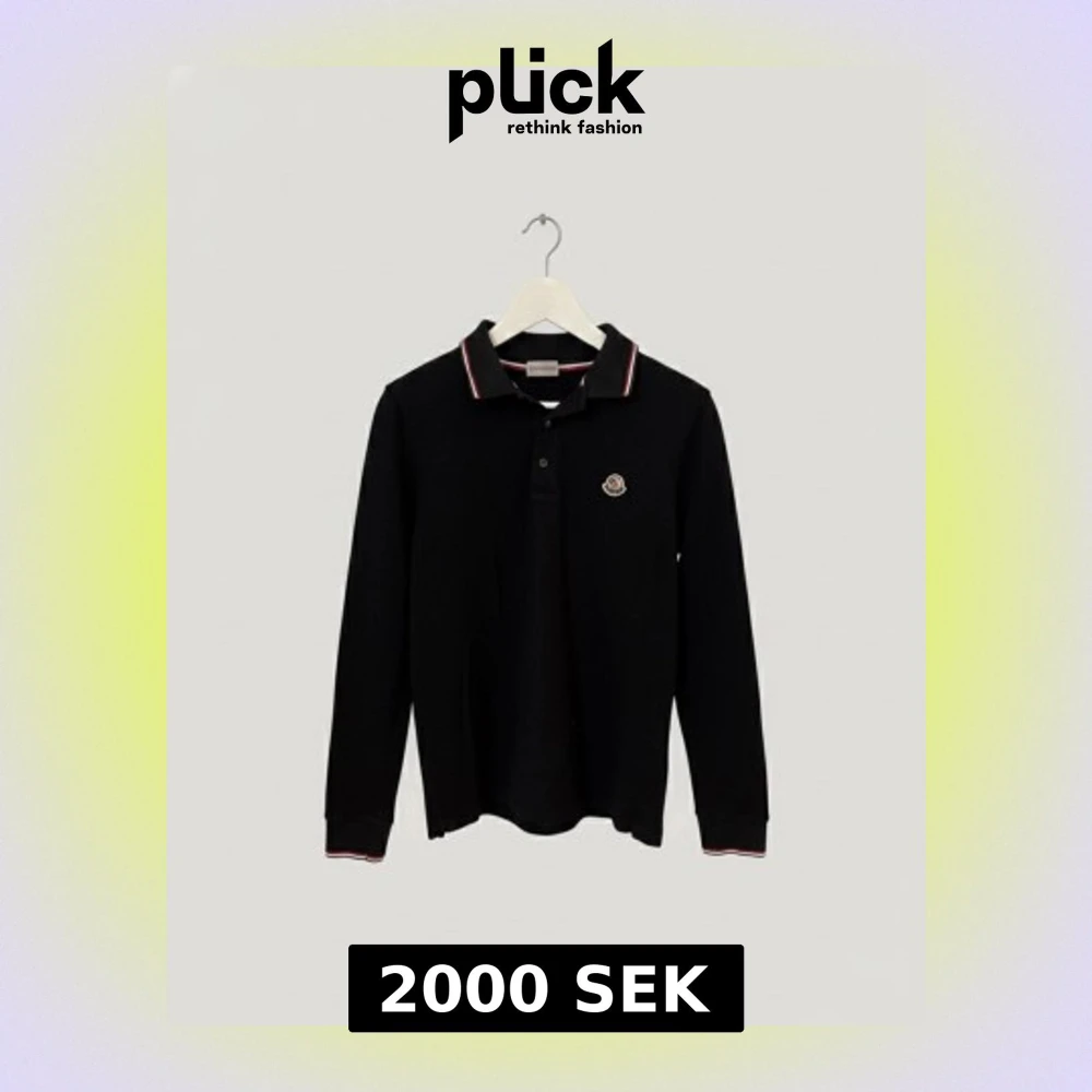 Svart långärmad pikétröja från Moncler med klassisk krage och knappslå. Tröjan har diskret Moncler-logga på bröstet och snygga rödvita detaljer på krage och ärmslut. Perfekt för dig som gillar stilrena och sportiga plagg.
