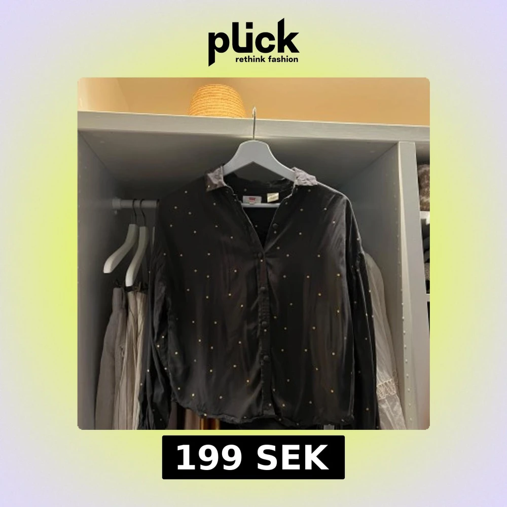 Svart kortare skjorta från Levi's i storlek XS med små gula prickar över hela tyget. Skjortan har klassisk krage, knappar framtill och långa ärmar. Materialet är mjukt och har en lätt glansig finish, vilket ger en cool och modern vibe.