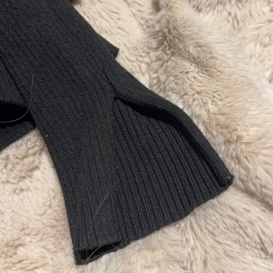 Snygg svart ribbad tröja med långa ärmar och en v-ringad design. Perfekt för kyligare dagar och kan enkelt matchas med olika outfits. Tröjan har en stilren look och är både bekväm och trendig.❤️
