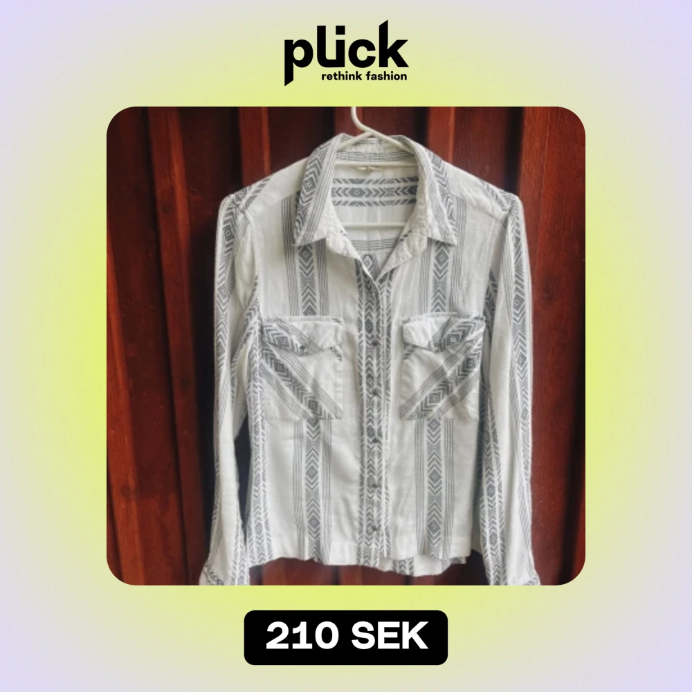Säljer en superfin skjorta från River Island i storlek 12. Den är vit med ett snyggt svart mönster som ger en bohemisk känsla. Skjortan har långa ärmar och två bröstfickor med knappar. Perfekt för både vardag och fest!