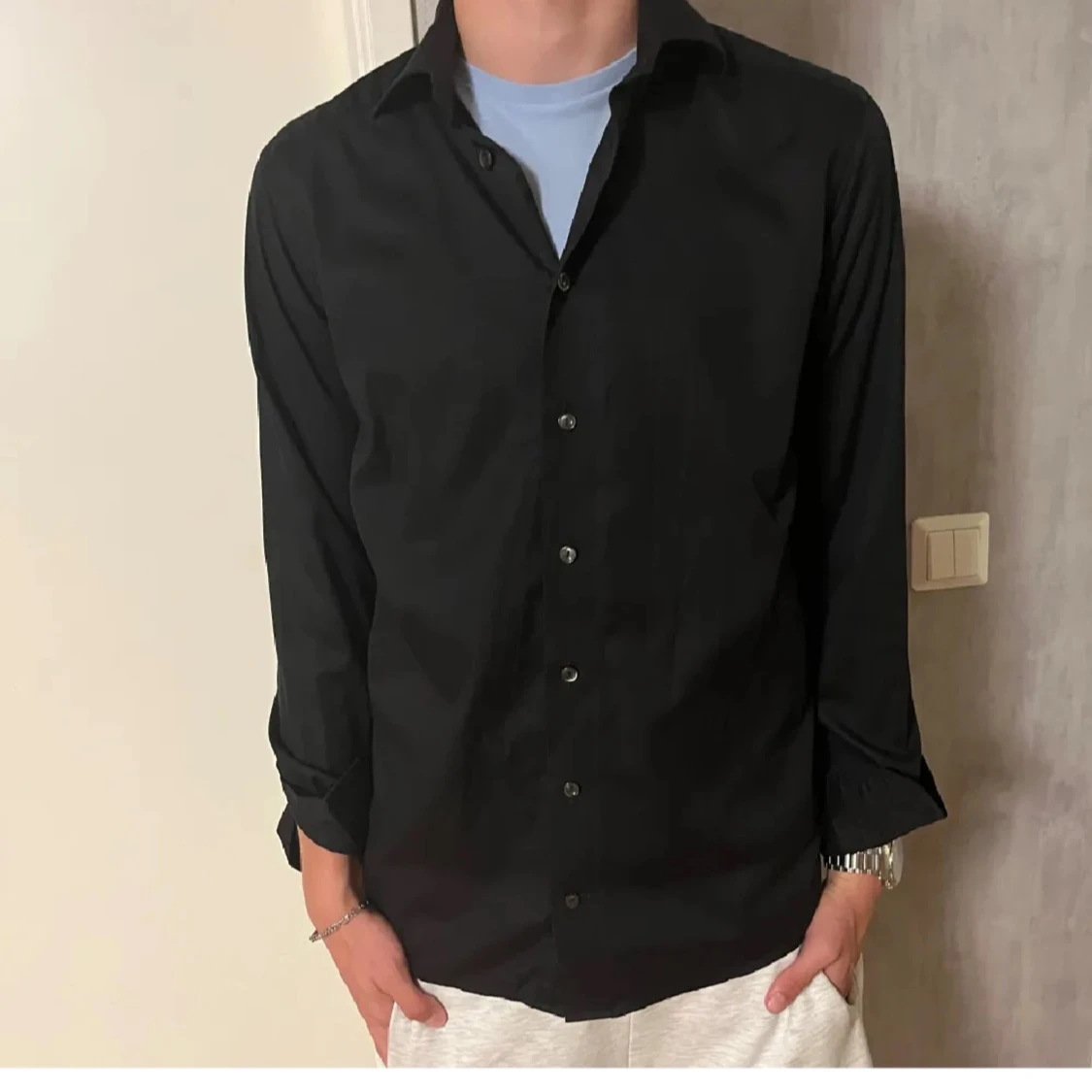 Svart eton skjorta i storlek 38 (passar ungefär M). Modellen är 185 och väger 70. Skjortan är i väldigt bra skick 9/10 inte så använd. Skriv vid frågor eller liknande!