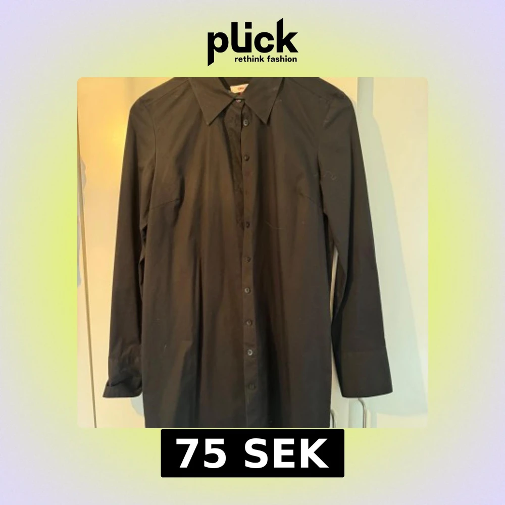 Klassisk svart storskjorta från ONLY med lång ärm och knappar framtill. Längre modell.