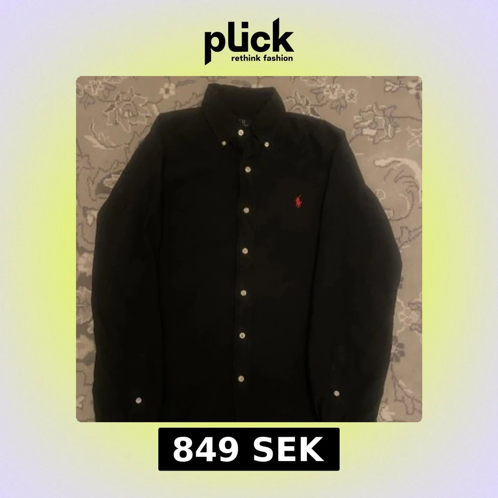 Snygg svart skjorta från Ralph Lauren med klassisk krage och knappar framtill. Den har en röd broderad logotyp på bröstet och är långärmad. Perfekt för en stilren look, nypris 1400, pris är inte hugget i sten vid snabb affär! Köpt på ROOM 1006 butik. Strl S. Inga defekter! Mer lik en M i storleken pga längd