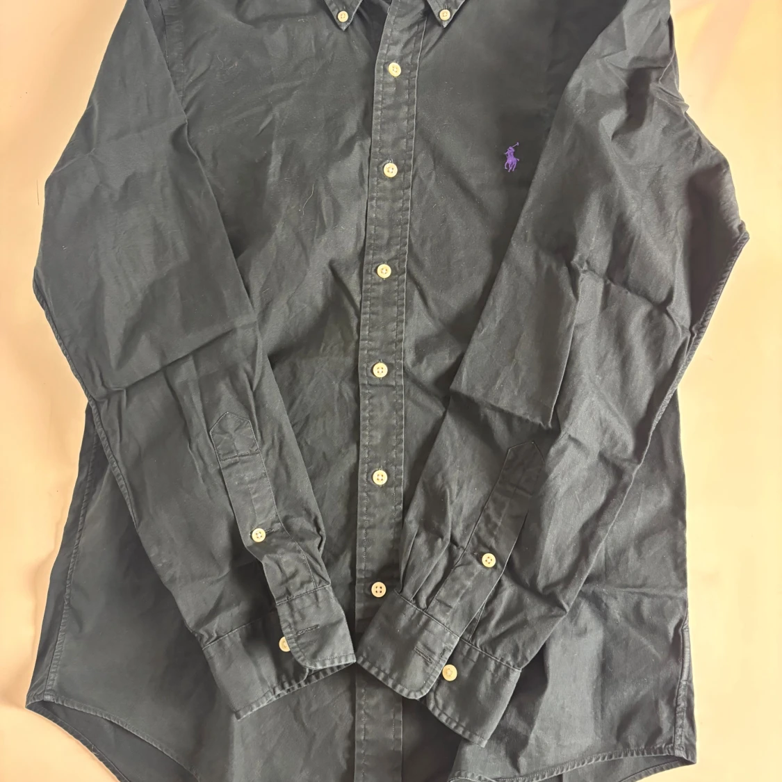 Klassisk svart skjorta från Ralph Lauren med lila broderad logga på bröstet. Skjortan har lång ärm, knappar framtill och button-down krage. Tillverkad i mjuk bomull som känns skön mot huden. Perfekt för dig som gillar stilrena och tidlösa plagg.
