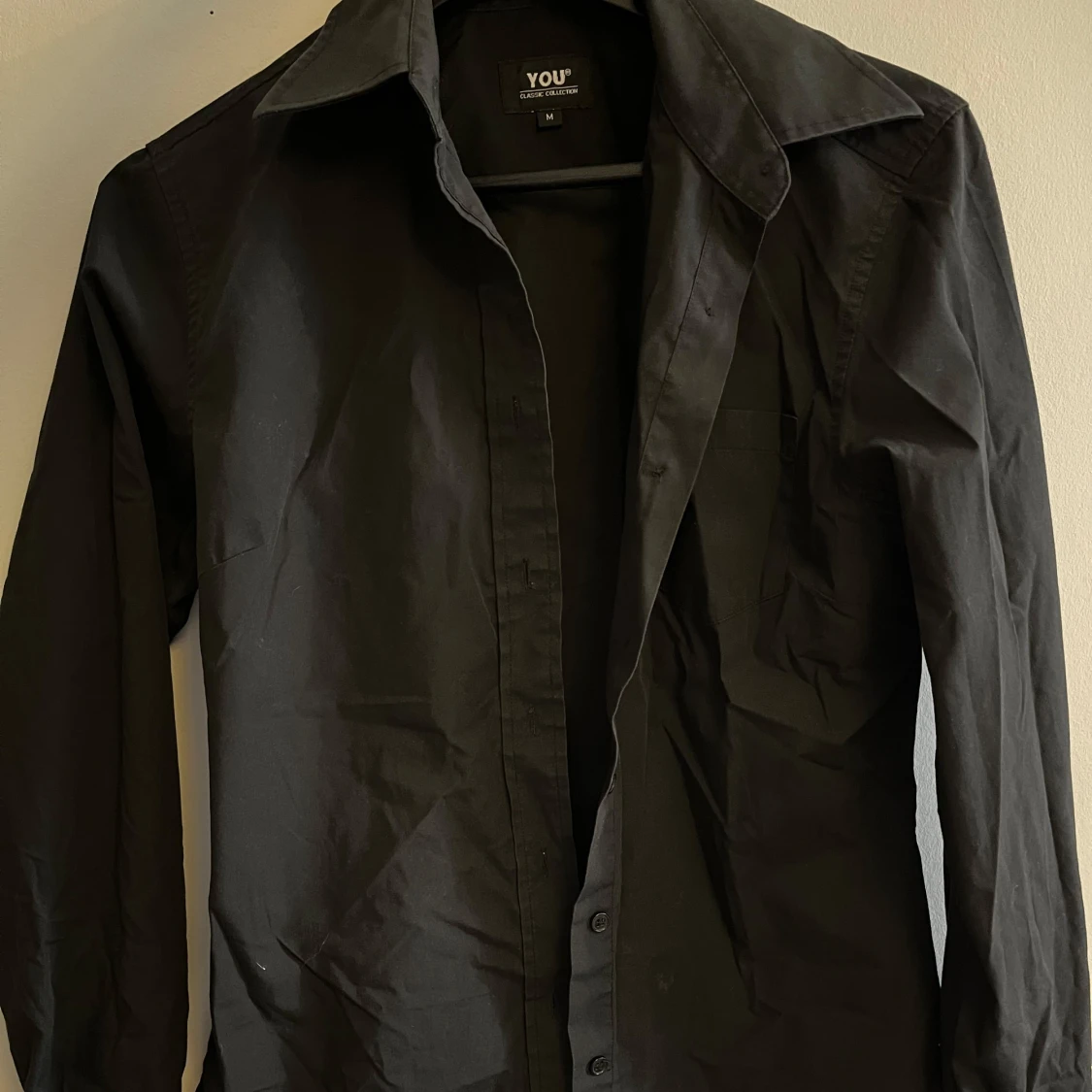Klassisk svart skjorta från YOU Classic Collection i storlek M. Skjortan har lång ärm, knappar framtill och en stilren krage. Perfekt för en clean och enkel look.