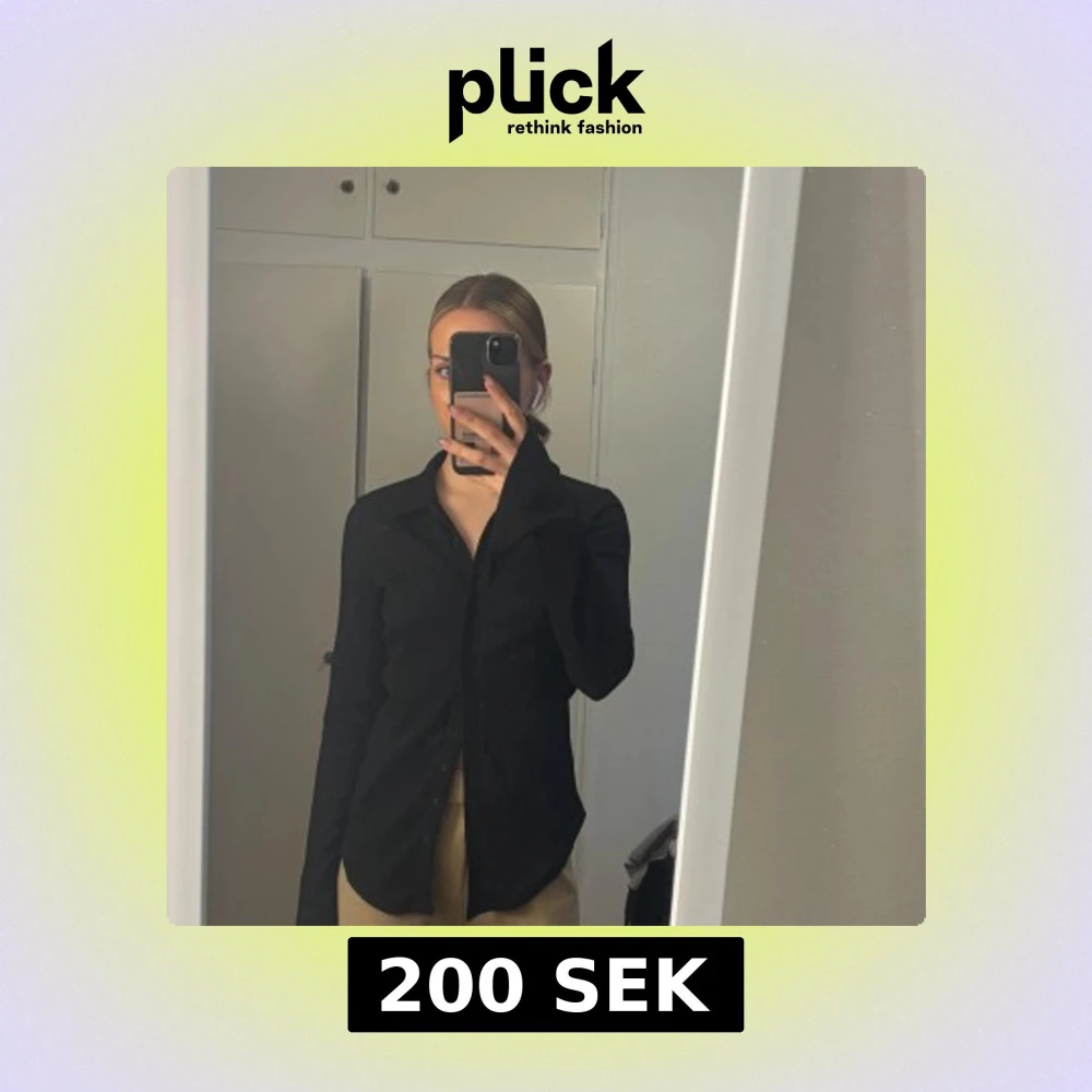 Säljer en svart skjorta med klassisk krage och knäppning framtill. Skjortan har lång ärm och en rak passform som ger en stilren look. Perfekt att styla till både jeans och kostymbyxor.