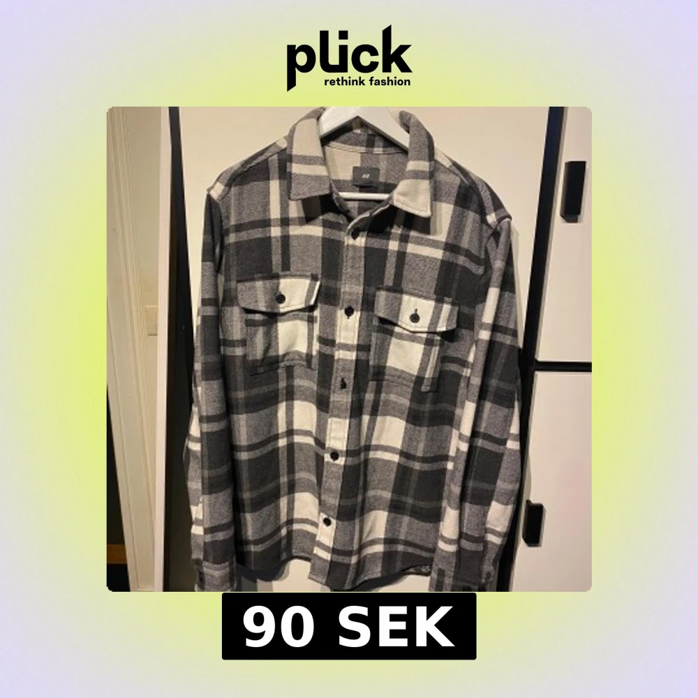 Säljer en svartvit rutig skjorta från H&M i storlek L. Skjortan har klassisk krage, knäppning framtill och två bröstfickor med lock och knapp. Perfekt för lager-på-lager och en avslappnad stil.
