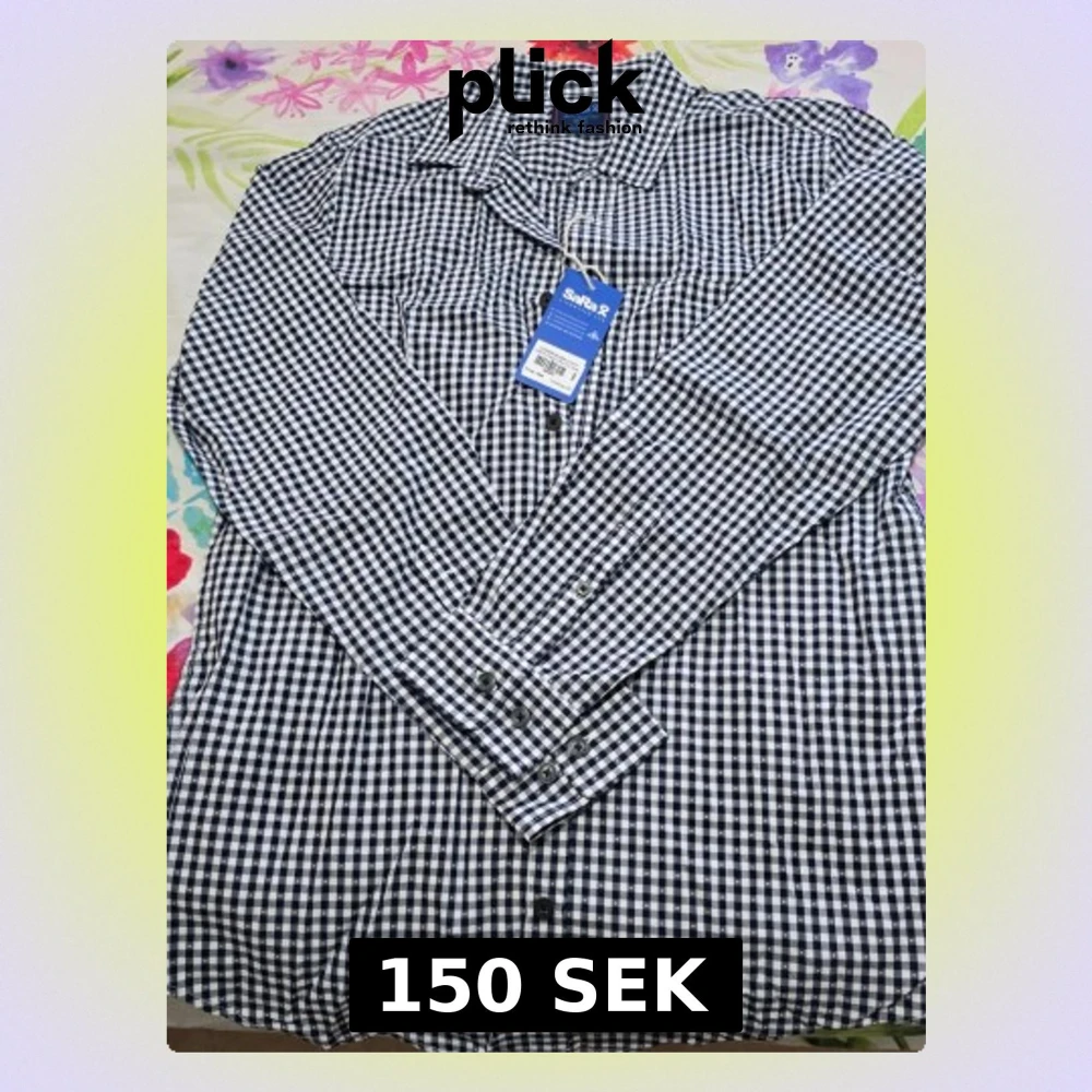 Säljer en svartvit rutig skjorta från SaRa i slim fit-modell. Skjortan har klassisk krage, långa ärmar och svarta knappar framtill samt vid manschetterna. Materialet är mjuk bomull som känns skönt mot huden. Perfekt för dig som gillar stilrena och tidlösa mönster.