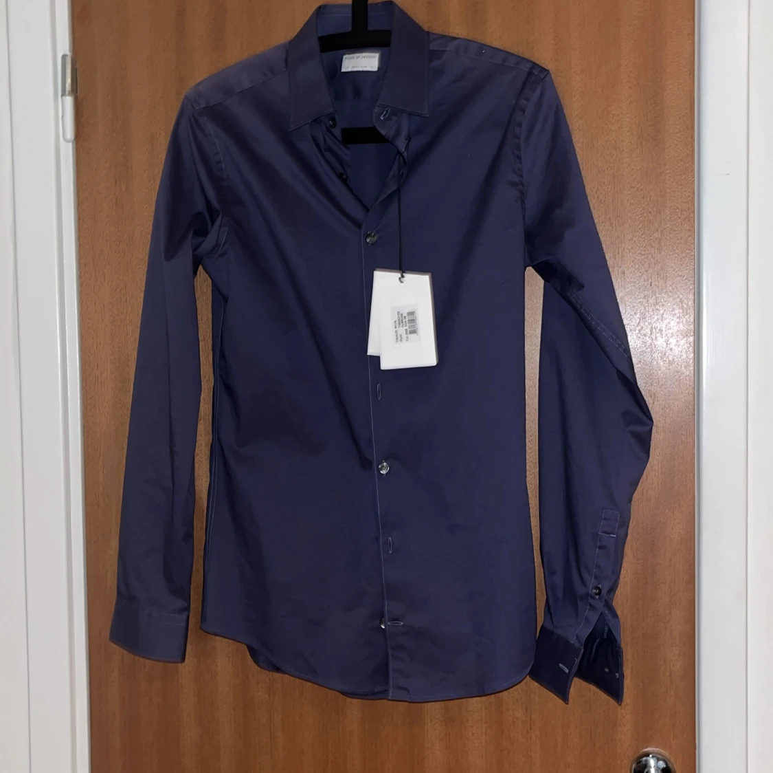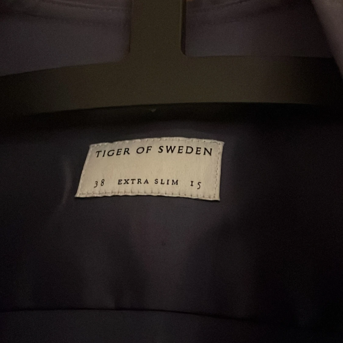 Säljer en mörkblå skjorta från Tiger of Sweden i extra slim fit. Skjortan har klassisk krage, långa ärmar och knäppning framtill. Perfekt för dig som gillar en stilren och tajt passform. Märkeslapp sitter kvar. Sitter som S