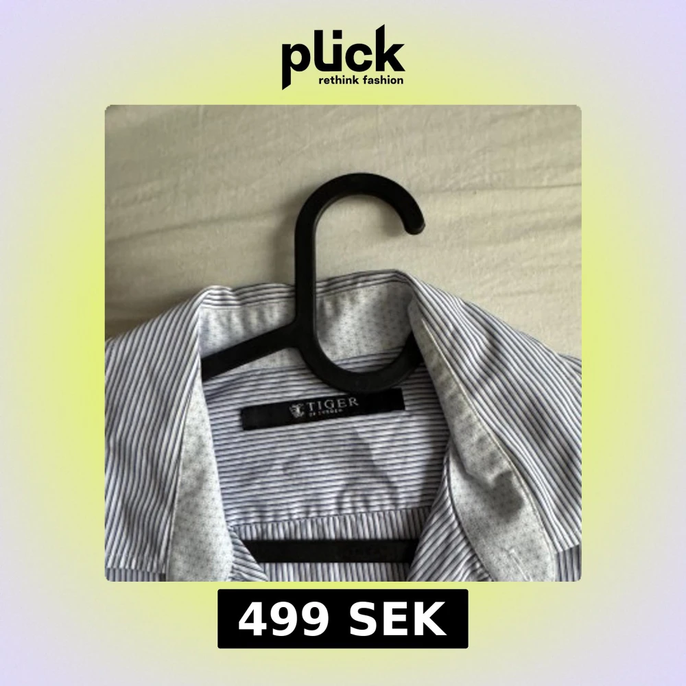 Snygg skjorta från Tiger of Sweden med tunna blå och vita ränder. Klassisk krage, långärmad och knäppning framtill med vita knappar. Perfekt för dig som gillar stilrena och tidlösa plagg. Gjord i mjuk bomull för en skön känsla. Funkar i storlek L också.