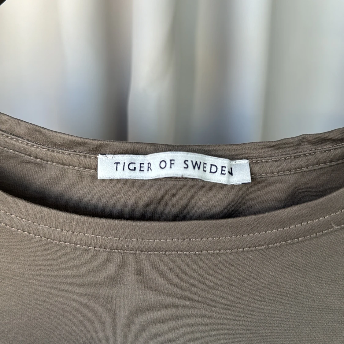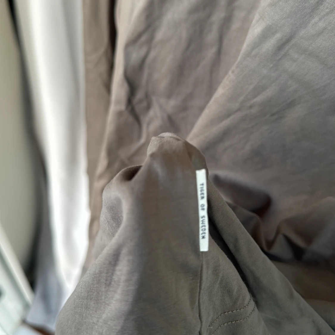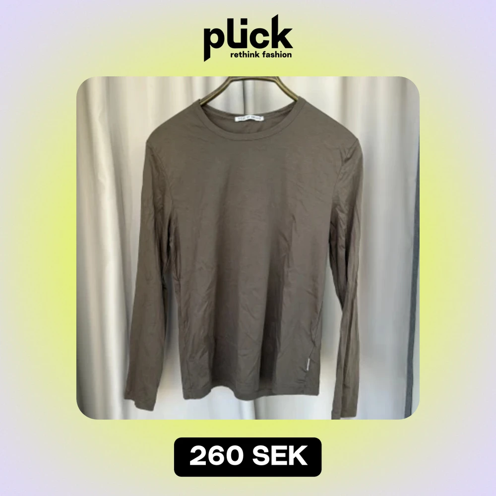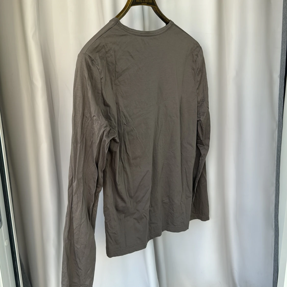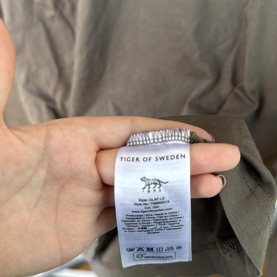 Long sleeve shirt, mix of grey and brown as a colour. Size unknown, oversized S? It’s a men’s shirt.