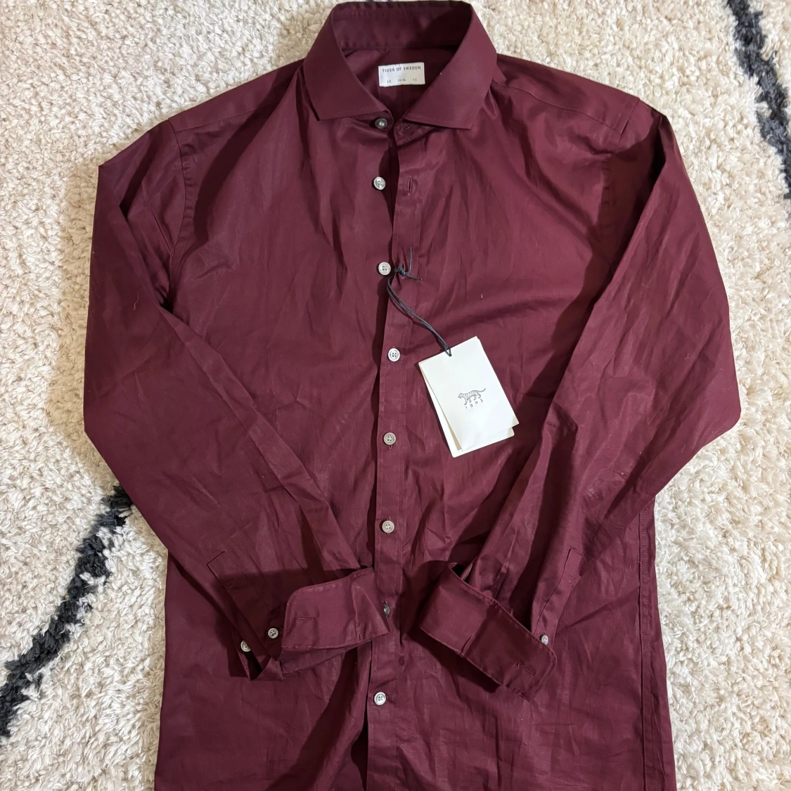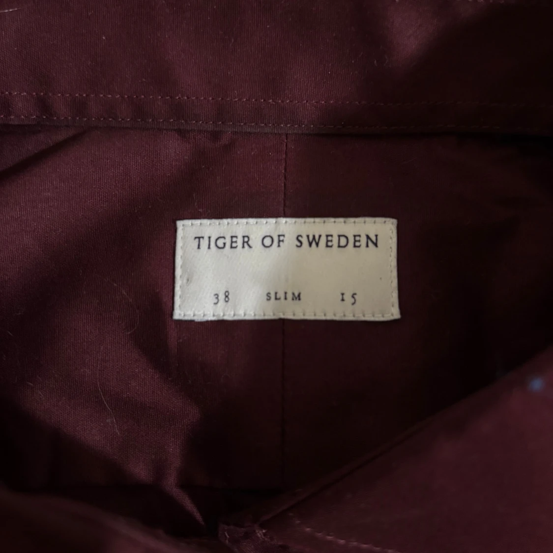 Säljer denna stilrena vinröda skjorta från Tiger of Sweden i slim fit. Den är i riktigt fint skick och bara provad på. Tagg finns kvar på skjortan (Bild 3). Modellen är 181cm lång och väger 72, tveka inte vid frågor eller prisförslag🍷🧳!
