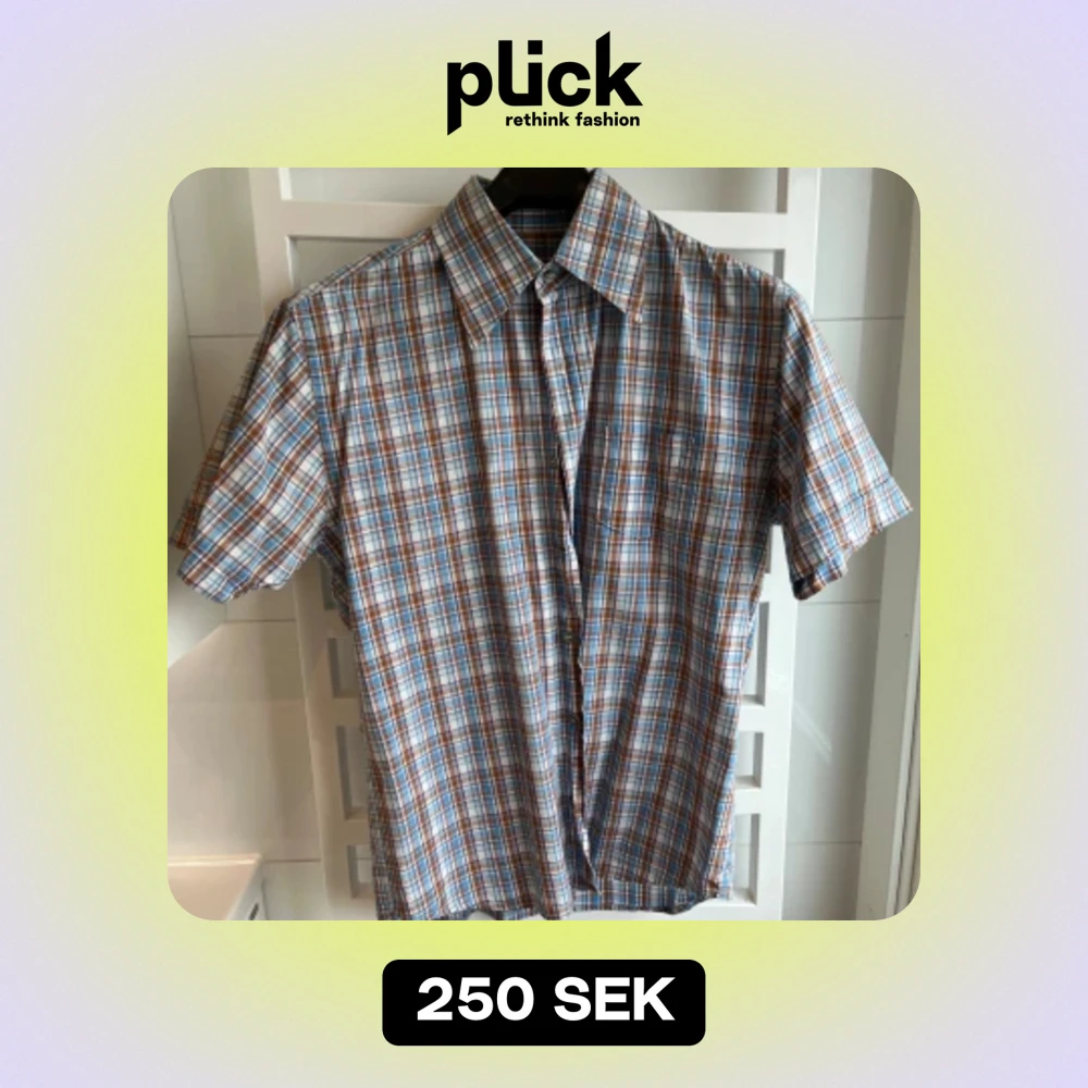 Kortärmad skjorta från TIGER OF SWEDEN. Knappen högst upp har tyvärr gått sönder (sista bilden). Annars är den helt fel fri.