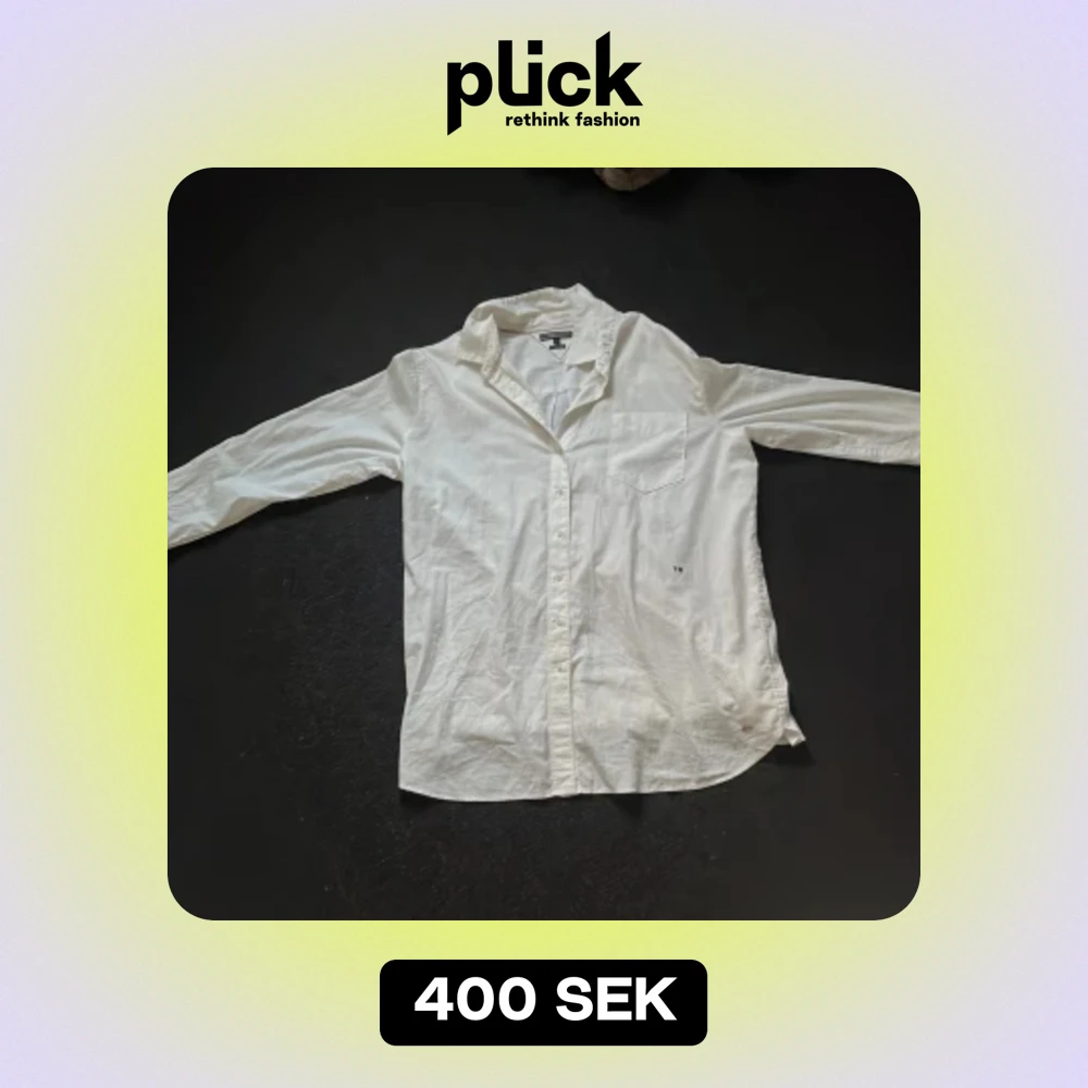 Denna skjortan passar till jeans, kostymbyxor, shorts, you name it!! Skjortan har vissa sminkfläckar men det går att ta bort. Det finns även en reservknapp vid lapparna innuti skjortan. Jag har använt den ca 3 gånger.