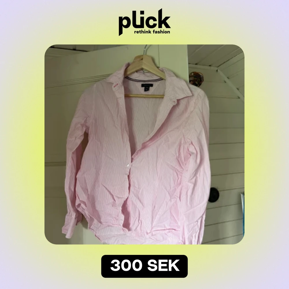 Ljusrosa skjorta med vita ränder från Tommy Hilfiger, knappt använd. USA storlek (L 12/14 years) men skulle säga det är S💕ostruken på bilden Köparen står för frakten💕 90kr