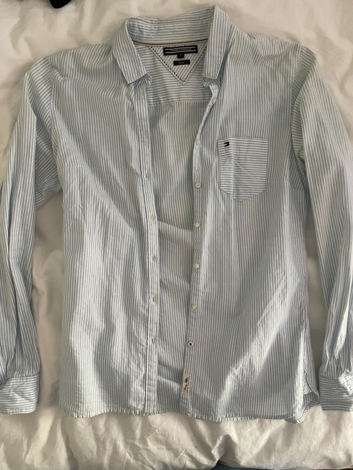 Skjorta i ljusblå/vit från Tommy Hilfiger, modell fitted.