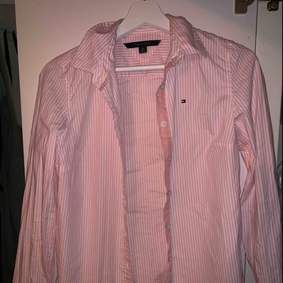 Stilren skjorta från Tommy Hilfiger! Nypris på ca 1000 kr. Från några år tillbaka men bara använd ett fåtal gånger. Jättefin passform som passar S om man gillar den lite tajtare. Kan mötas upp i Lkpg eller fraktas. Köparen står för frakten.