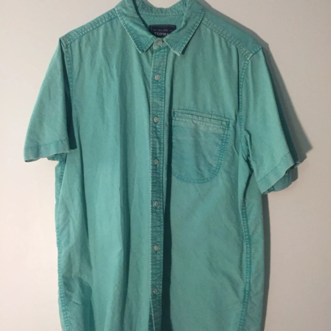 Grönblå kortärmad skjorta, tvättad färg, hel och ren.