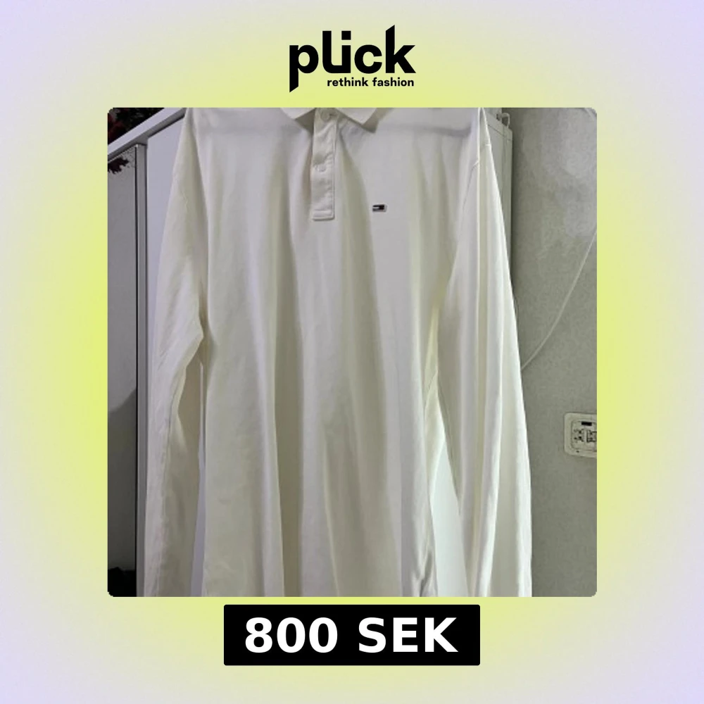 Vit långärmad skjorta från Tommy Jeans i storlek XL. Klassisk design med krage och knappar framtill, samt diskret logga på bröstet. Skjortan är gjord i mjuk bomull och har en clean look som funkar till många stilar.