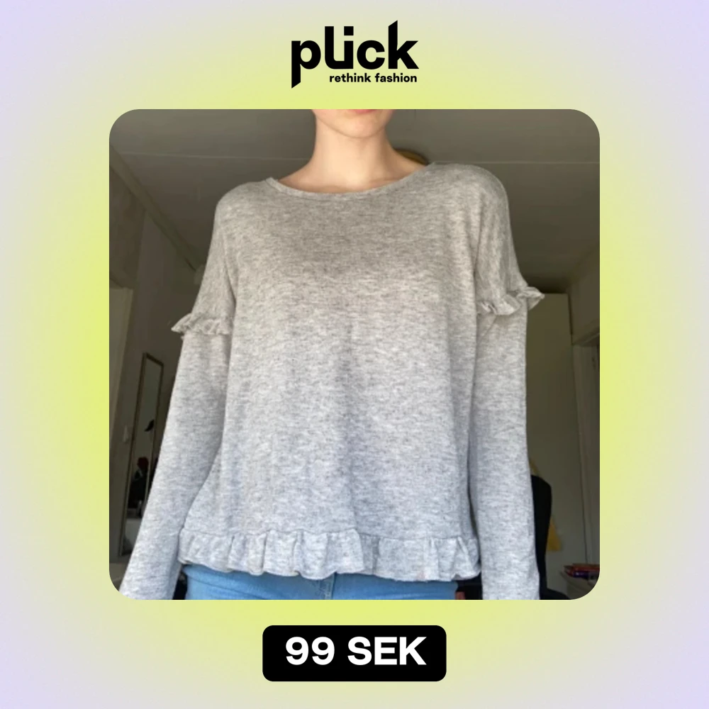 så skön och fin grå tröja med volanger!🌸 Perfekt att ha nu när det börjar bli varmare🫶🏼