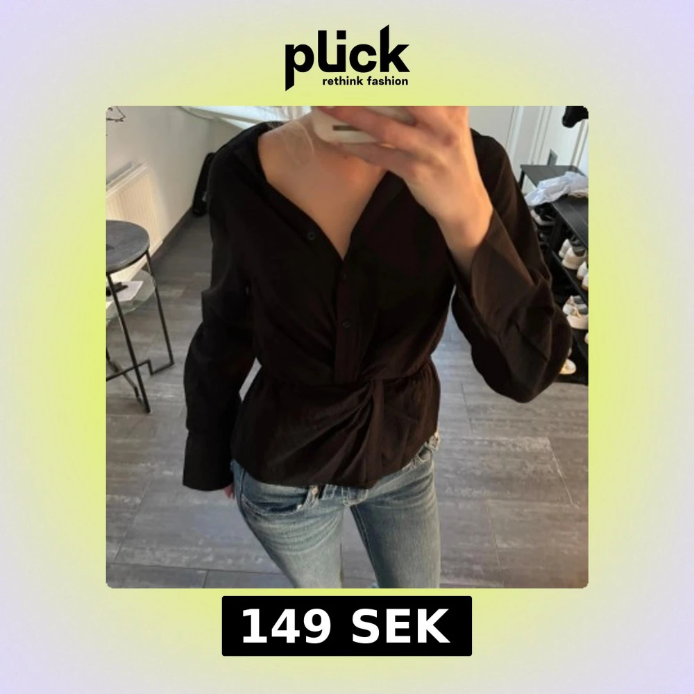 SĂ€ljer svart skjorta med en twistad knut framtill och slit i armarnađfrĂ„n Gina, linnematerial, sĂ€ljer dĂ„ de Ă€r fel storlek för mig đskriv vid frĂ„gor