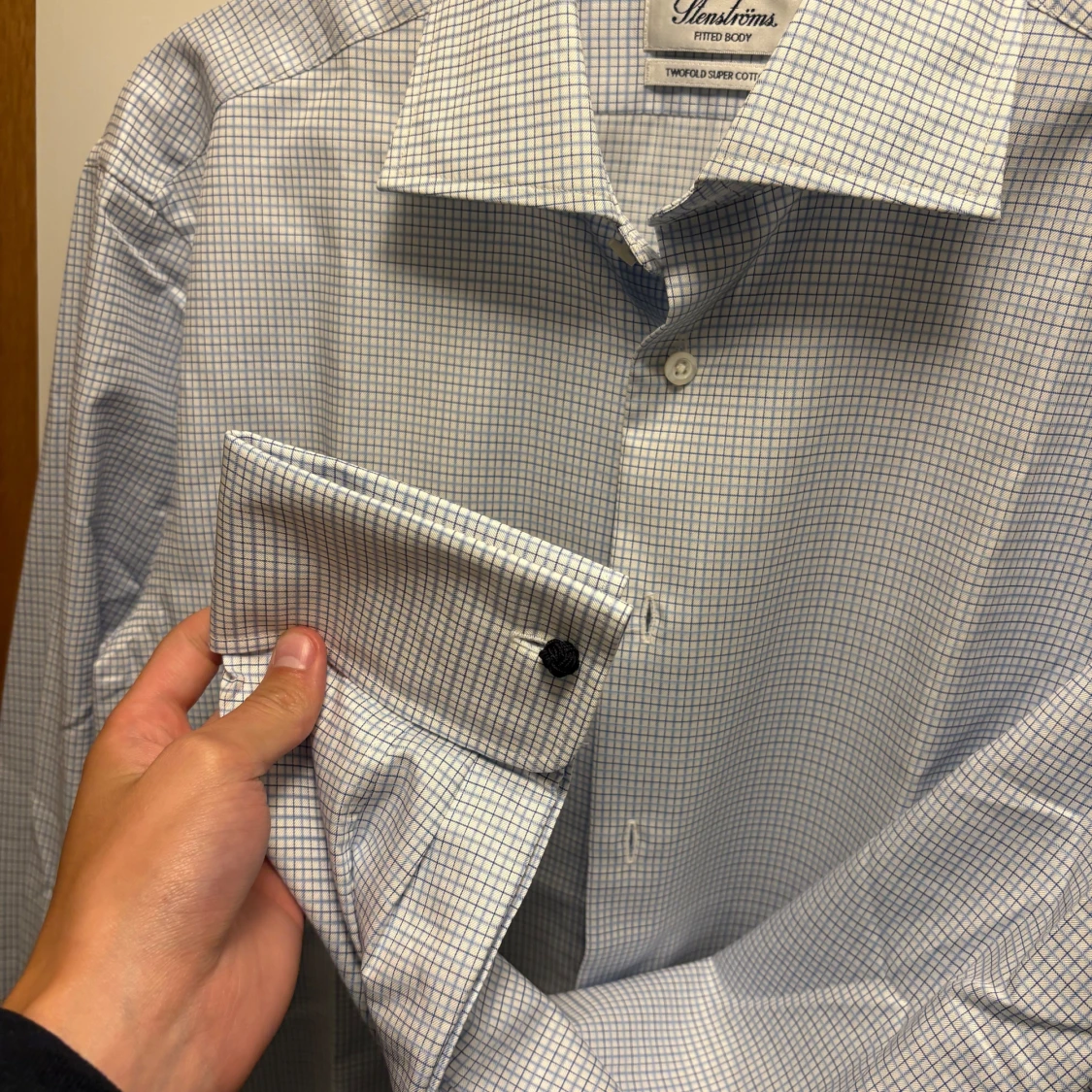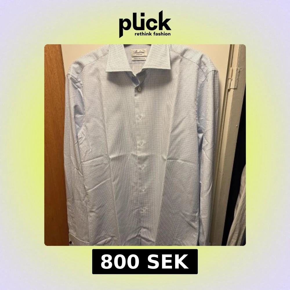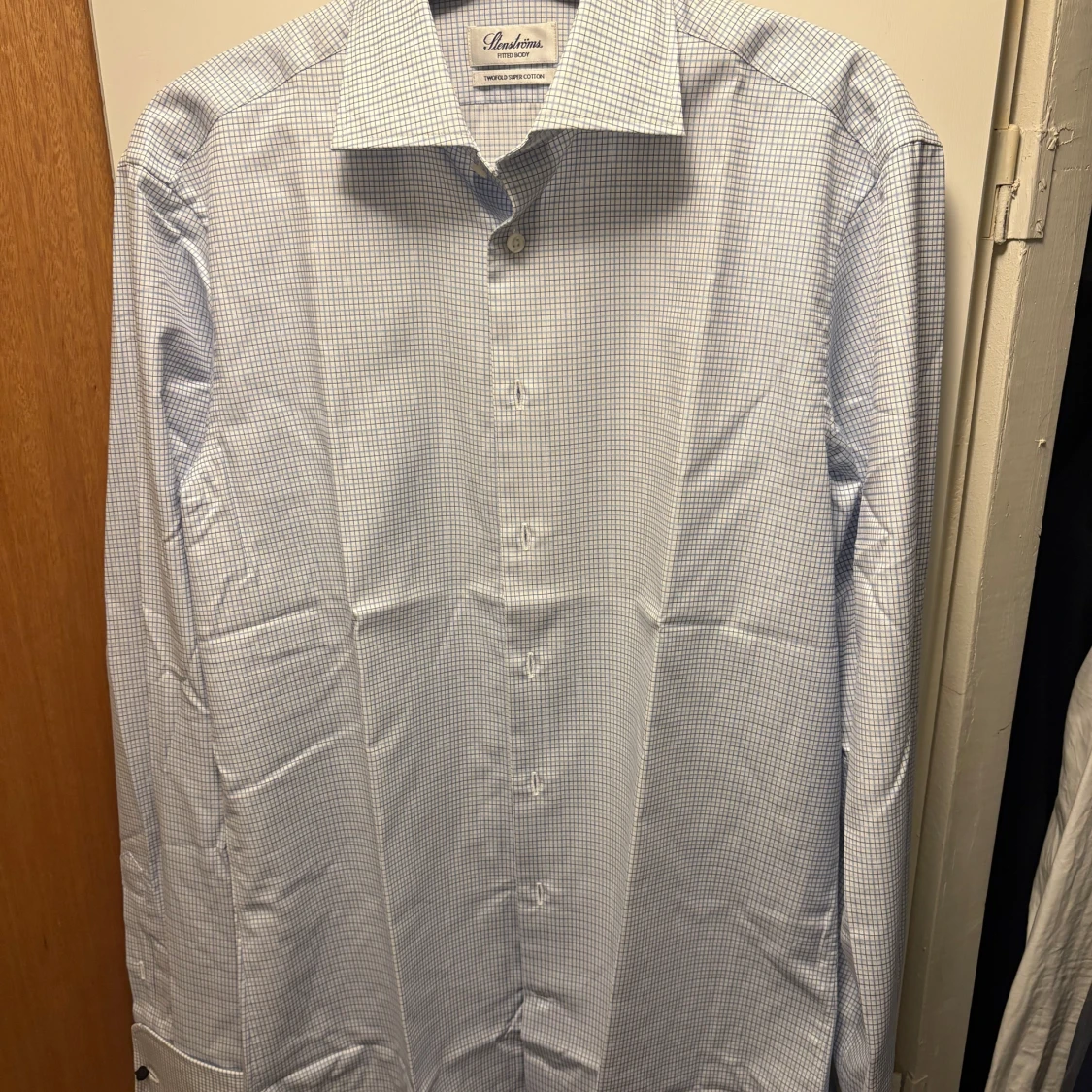Snygg rutig skjorta från Stenströms i vitt och blått. Skjortan har klassisk krage, twofolded och med plats för manschettknappar. Tillverkad i mjuk bomull och har en fitted passform. Strl 38, använd 1 gå g