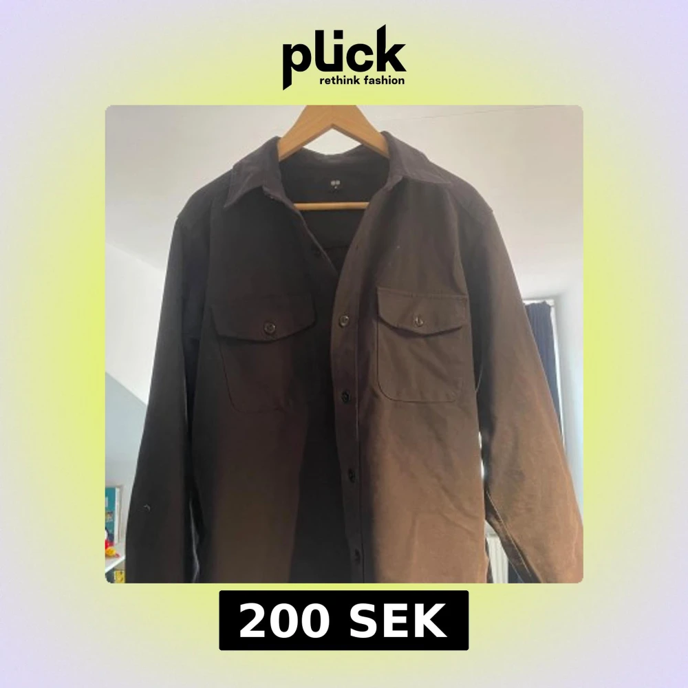Säljer en Mörkblå overshirt från Uniqlo i storlek M. Perfekt att slänga över en t-shirt eller hoodie för en clean och stilren look. Den är välanvänd så defekter förekommer