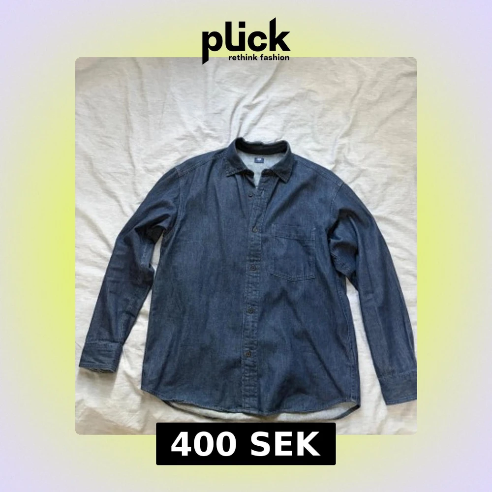 Snygg washed denim overshirt från Uniqlo i klassisk modell med bröstficka och knappar framtill. Knappt använd alls. Storlek Small men pass även medium
