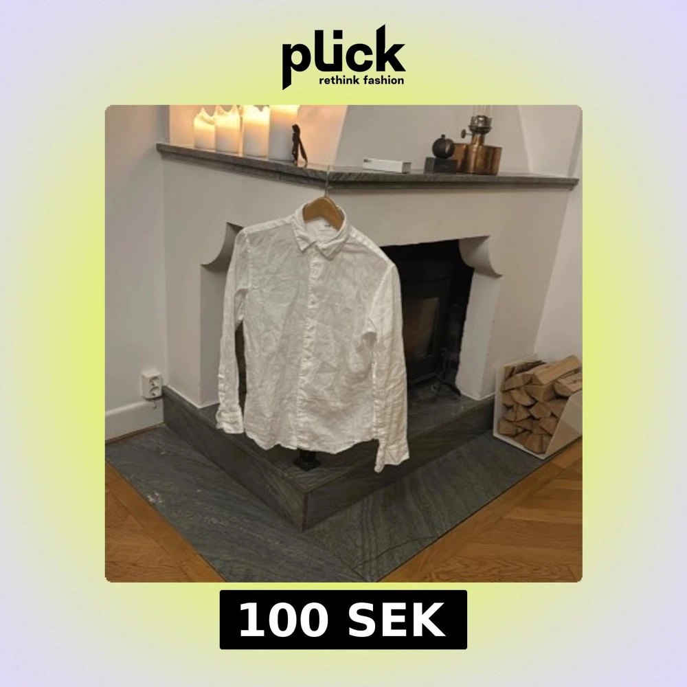 Säljer en stilren vit linneskjorta med klassisk krage och knappar framtill. Skjortan har långa ärmar och är perfekt för en avslappnad men ändå elegant look. Passar bra till både jeans och chinos. Nypris: 600kr