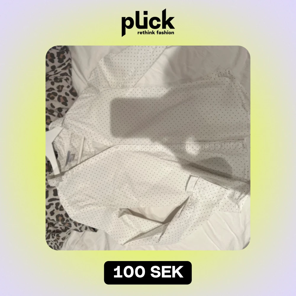 Säljer denna vit, prickiga blus från HM, i superfint skick, perfekt för våren! Sitter tyvärr lite tajt över mina bröst vilket gör att den inte kommer till användning! Storlek 38, men skulle säga den sitter mer som en 36, beroende p bröst och passform