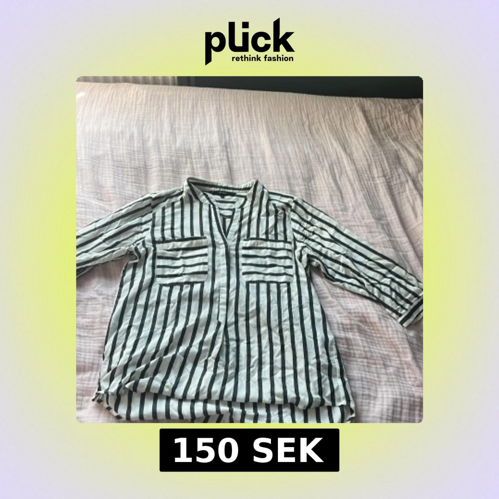 Snygg vit och svart randig skjorta från Vero Moda i storlek M. Skjortan har v-ringning, två stora bröstfickor och mellan långa ärmar. Perfekt för dig som gillar en avslappnad men trendig look. Materialet känns lätt och luftigt.