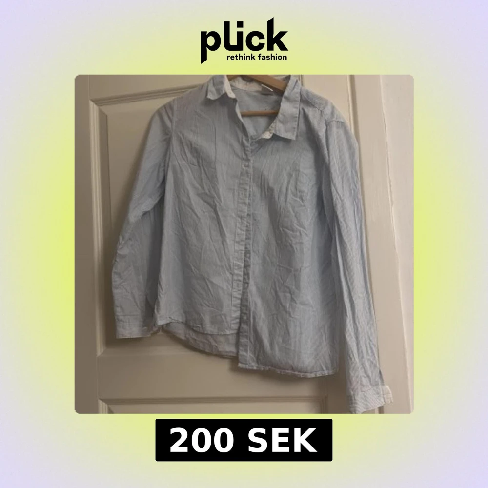 Klassisk skjorta med smala blå och vita ränder. I storlek L men skulle säga att den är i storlek S. Perfekt för dig som gillar en clean och stilren look.