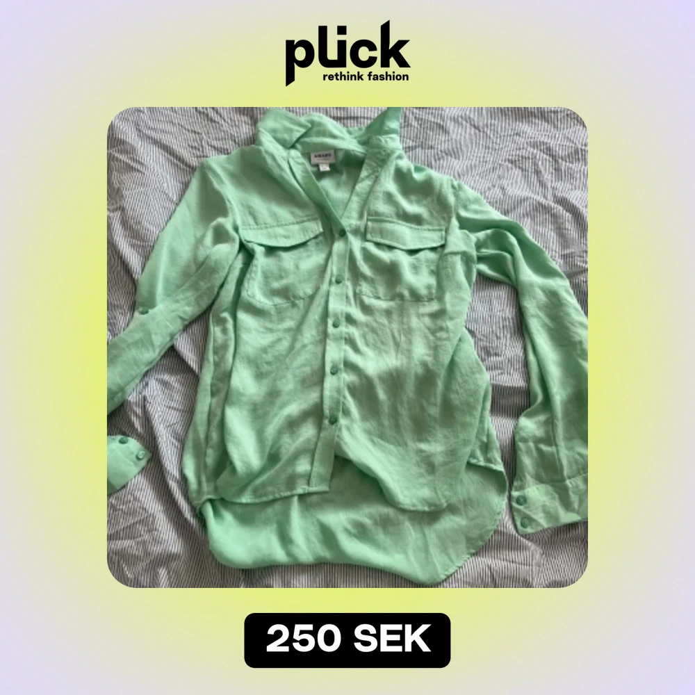 Otroligt fin ljusgrön färg och otroligt mjukt material! Den går ner lite längre över rumpan. Skjortan är tunn och bra till vår/sommar!❤️