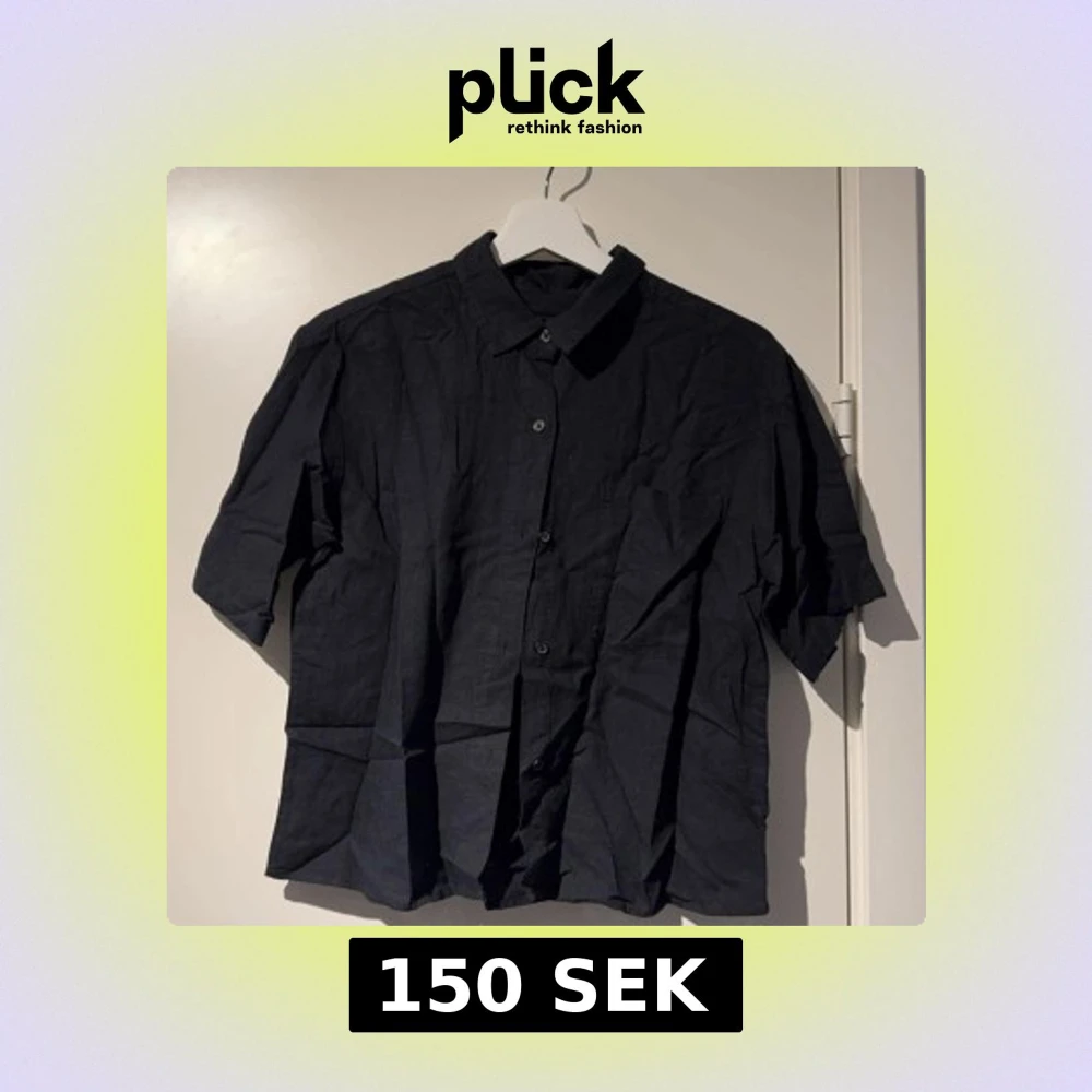 En svart kortärmad skjorta med klassisk krage och knäppning framtill. Skjortan har en enkel och stilren design, perfekt för en avslappnad look. Tillverkad i ett lätt tyg som känns svalt.