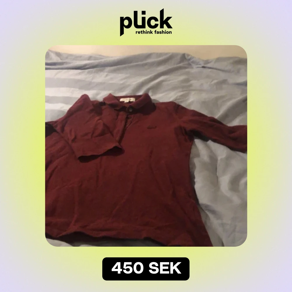Tjena, säljer min Lacoste piké som är sparsamt använd under en sommar, därför inga defekter. Pikén har ett skönt bomullsmaterial med en fin vinröd färg. Loggan smälter in med tröjan, vilket är Lacoste pikén modellen ”Paris”, vilket är riktigt snyggt.