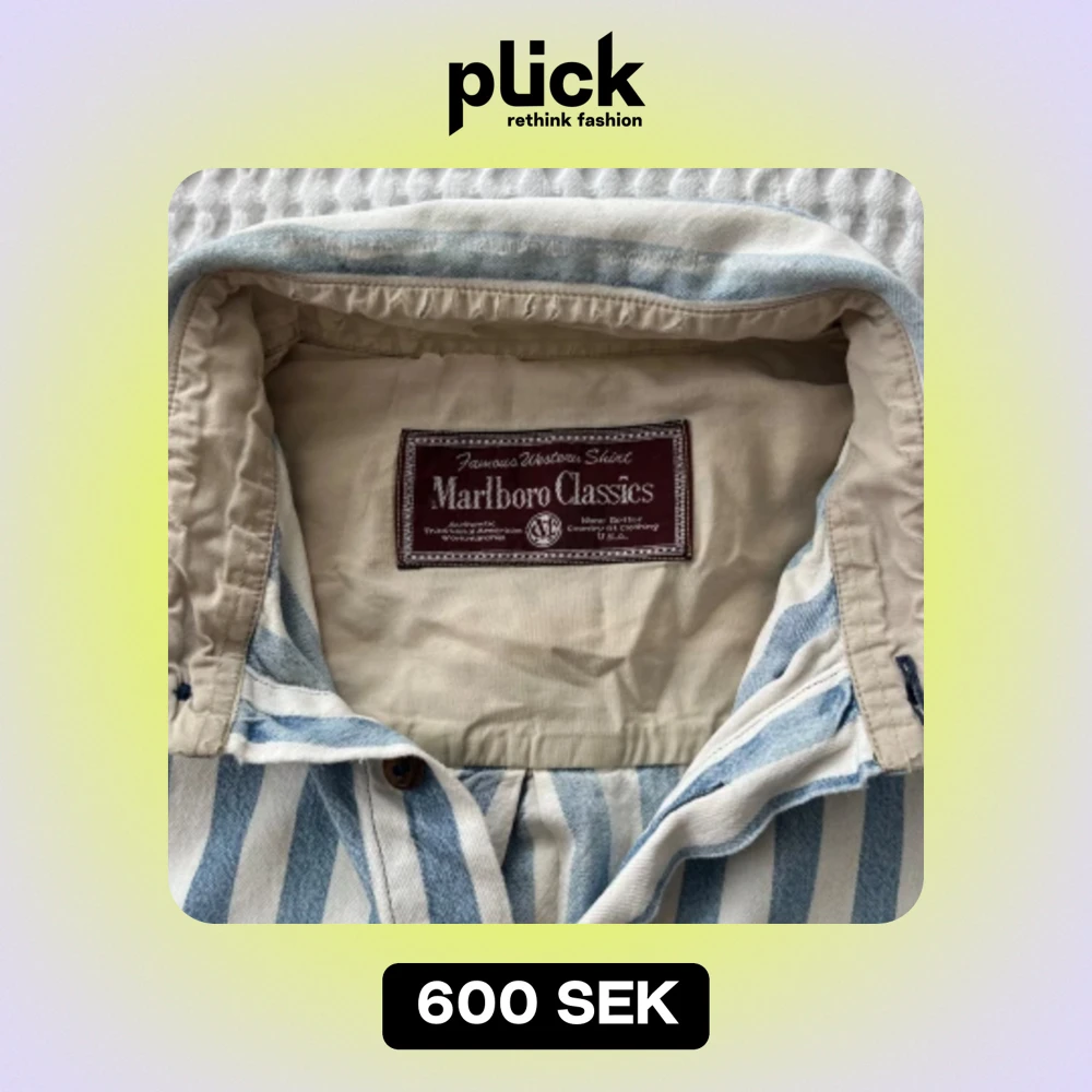 Vintage Marlboro skjorta. Blå och vitrandig. Storlek L, stor i storlek
