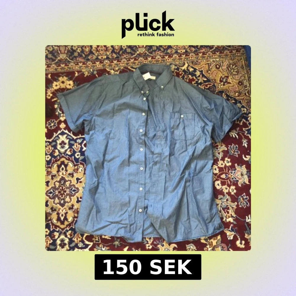 Snygg blå kortärmad skjorta med diskreta ränder och knappar framtill. Perfekt för en avslappnad stil. Har en bröstficka för extra stilpoäng.