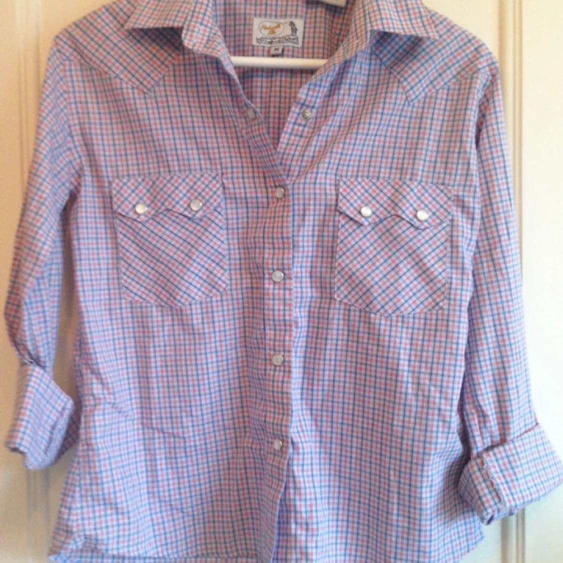Vintage skjorta från USA. Kort modell med tryckknappar. Betalning via Swish, jag möter upp i Sthlm.