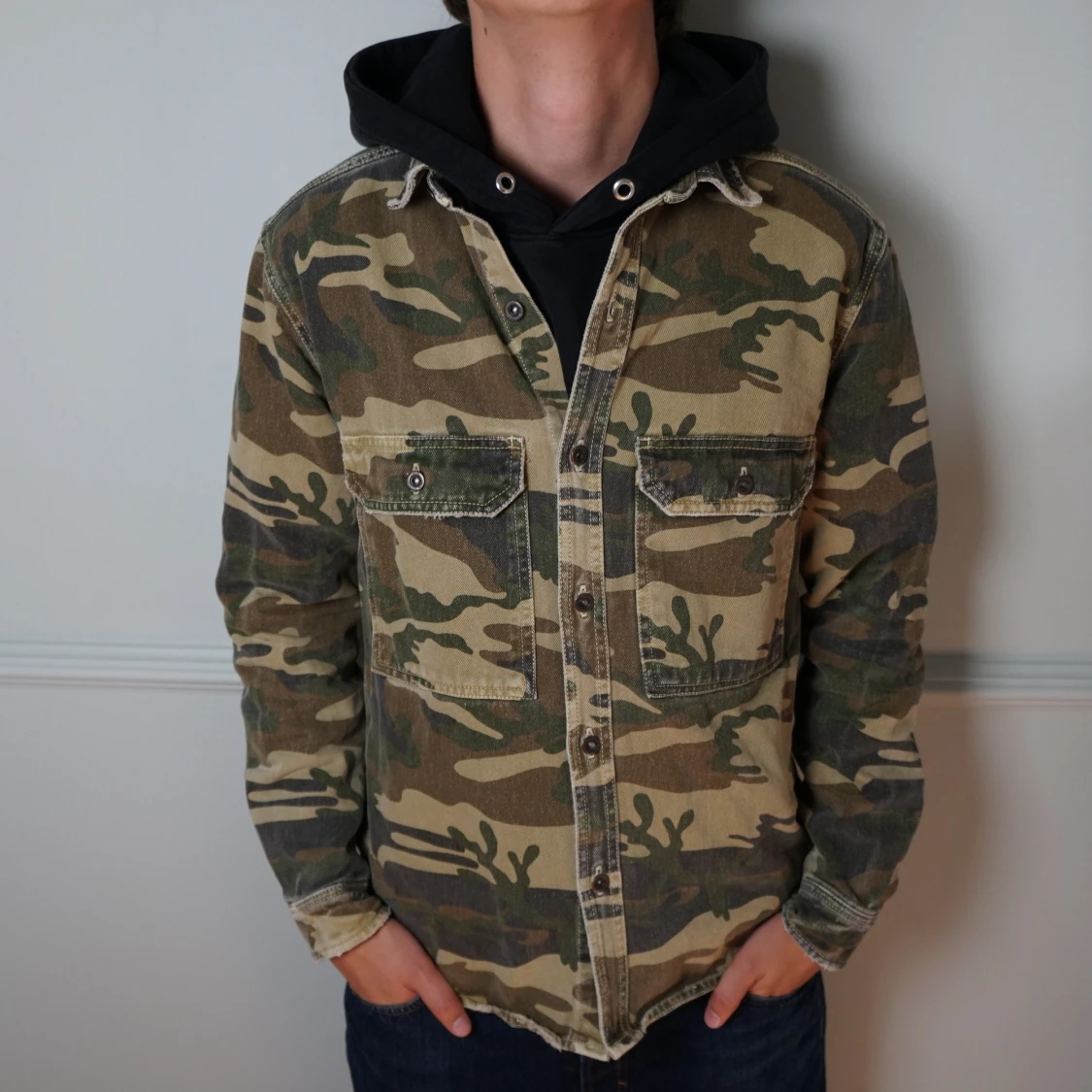 Sinnessjuk camo overshirt| Märke: Okänt | Skick: 8.5/10 | Strl: S | Modellen är 182 cm | Hör av dig vid intresse eller om du undrar någonting!