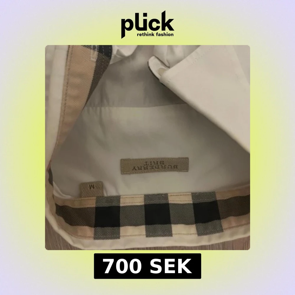 Snygg vit skjorta från Burberry Brit i storlek M. Klassisk design med knappar framtill och långärmad modell. Kragen och ärmsluten har Burberrys ikoniska beige och svart rutiga mönster som ger en exklusiv touch. Perfekt för dig som gillar stilrena plagg med lyxig känsla.