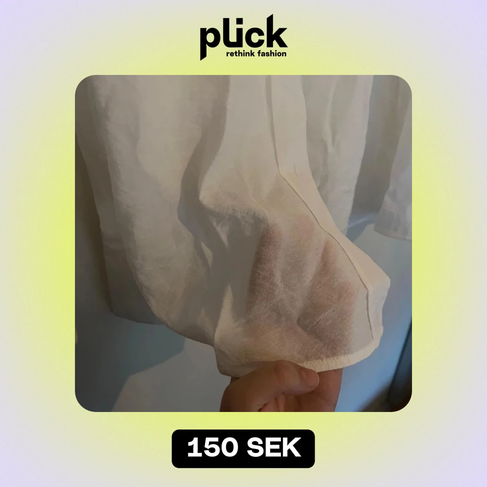 Vit långärmad genomskinlig skjorta med stor krage och rundade sidor. Testad men aldrig använd.