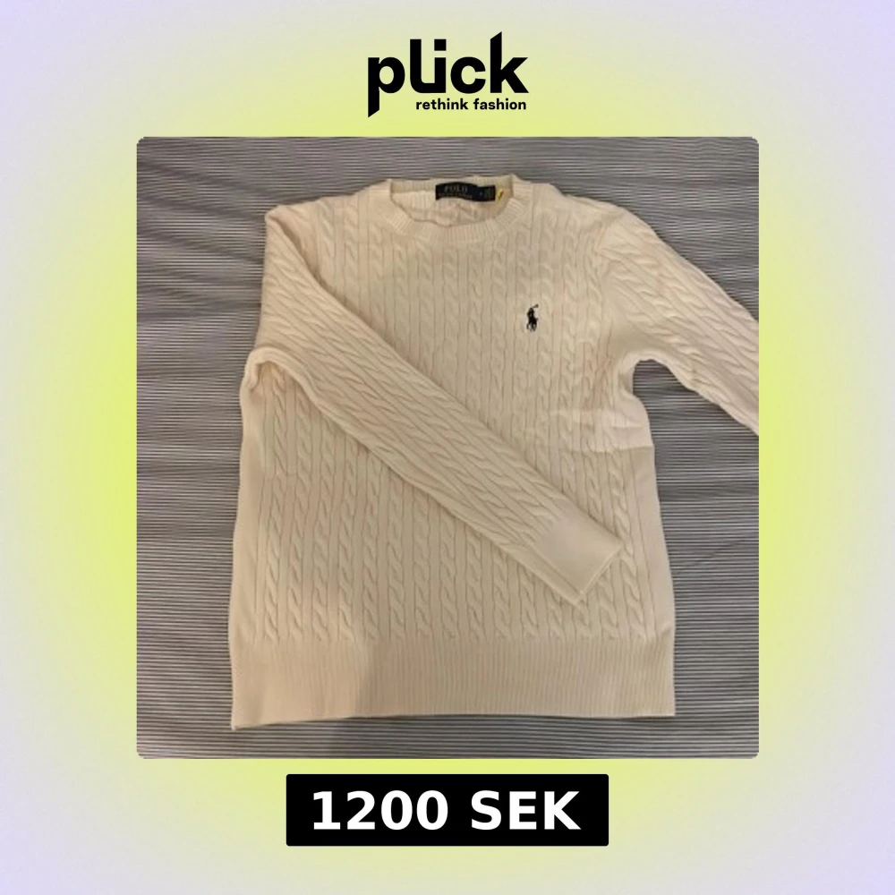 Snygg vit kabelstickad tröja från Polo Ralph Lauren med klassisk rund hals och broderad logga på bröstet. Tröjan har långärmad passform och ribbade muddar vid hals, ärmslut och nederkant. Priset är inte hugget i sten 😁
