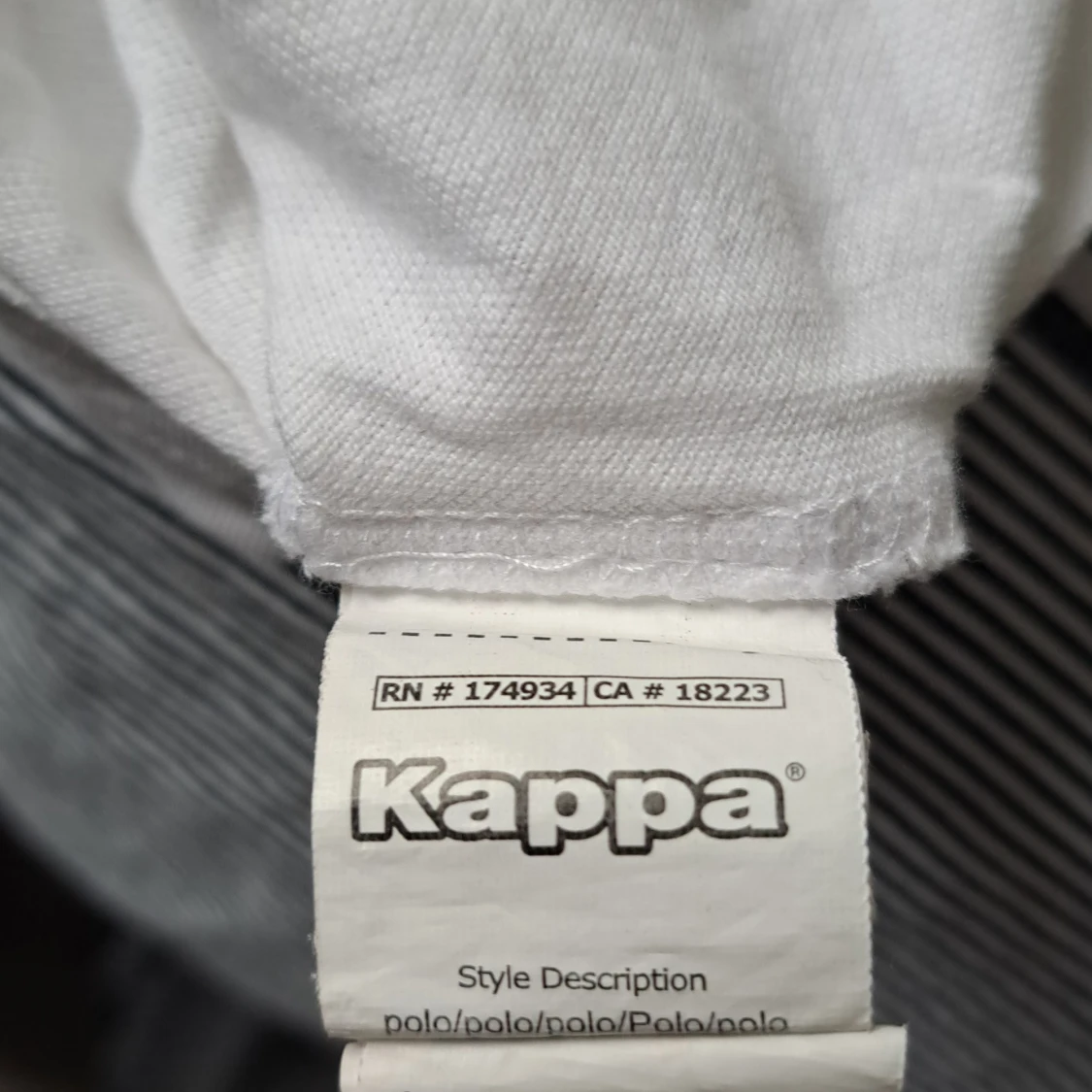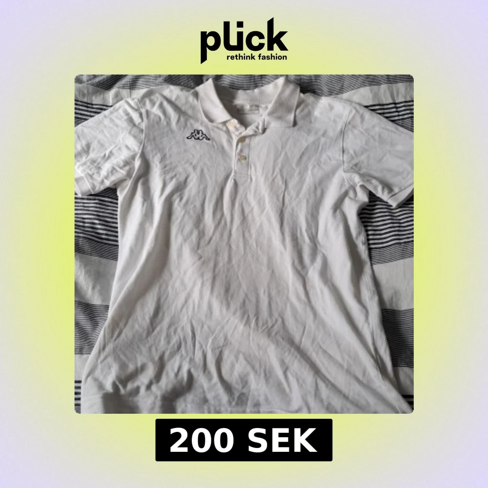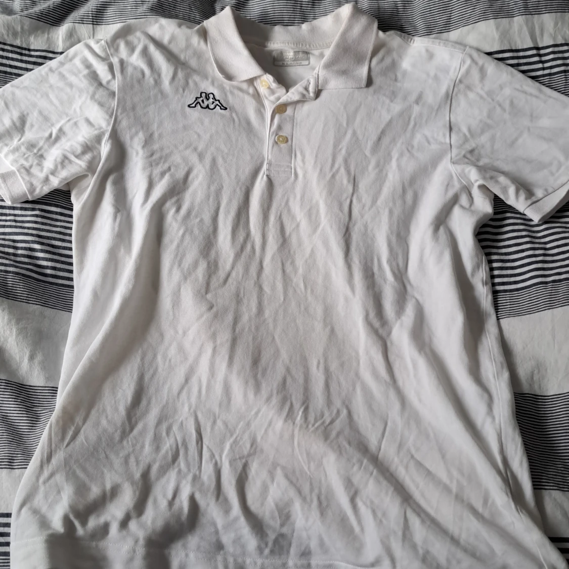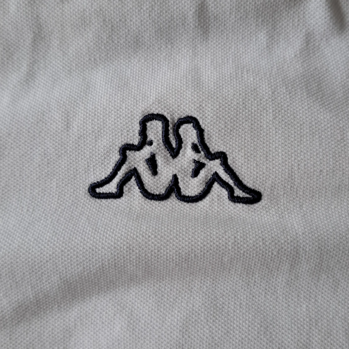 Vit pikétröja från Kappa i bomull med klassisk krage och knappar framtill. Broderad Kappa-logga på bröstet och tryckt Kappa-text på baksidan av kragen. Kortärmad och stilren design som passar perfekt till jeans eller shorts.
