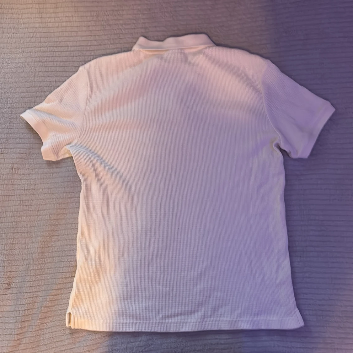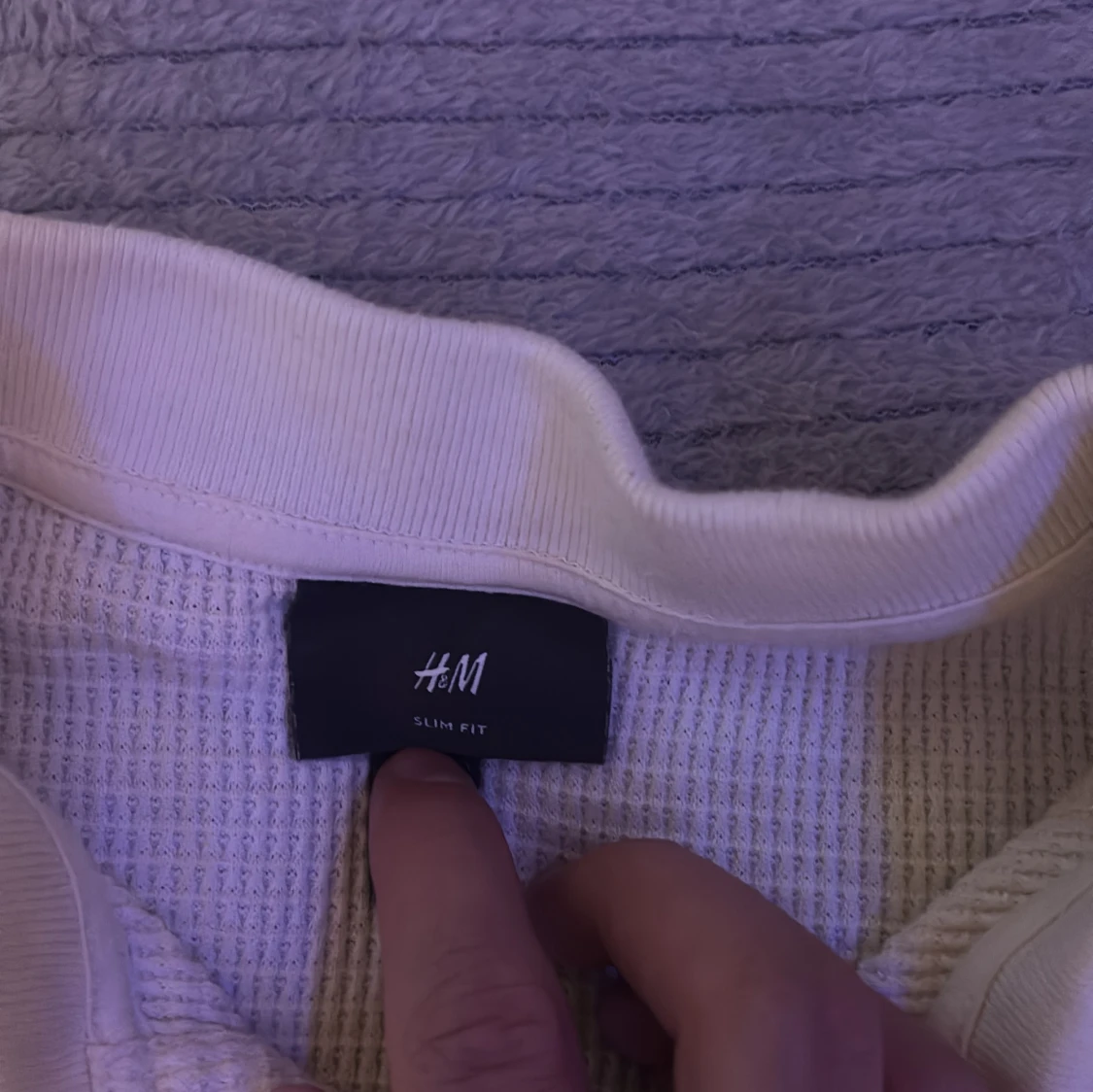 Vit pikétröja från H&M i slim fit-modell. Skjortan har korta ärmar, klassisk krage och två knappar framtill. Materialet är strukturerat och känns mjukt mot huden. Perfekt för en clean och fräsch look.