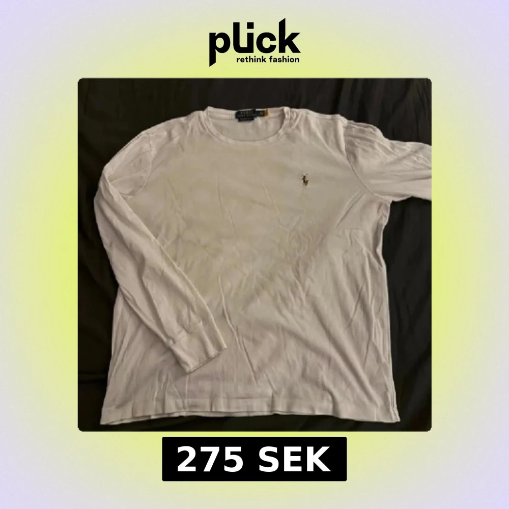 Säljer en stilren vit långärmad tröja från Ralph Lauren med det klassiska logotypbroderiet på bröstet. Tröjan har en rund halsringning och är i en slim fit-modell. Perfekt för en avslappnad men ändå elegant look.