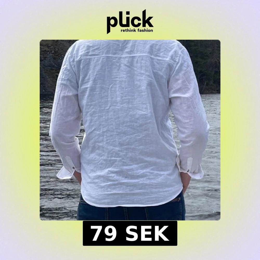 Vit skjorta från H&M i en blandning av linne och bomull. Klassisk modell med lång ärm, bröstficka och knappar framtill. Perfekt för en stilren och avslappnad look.