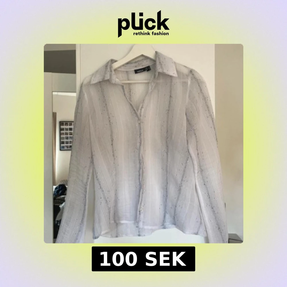 Snygg vit skjorta från Mexx med tunna svarta ränder och diskreta prickar. något genomskinlig. Skjortan har klassisk krage, knappar framtill och är långärmad. Materialet är lätt och luftigt, perfekt för varmare dagar. Passformen är normal och skjortan har en stilren look.