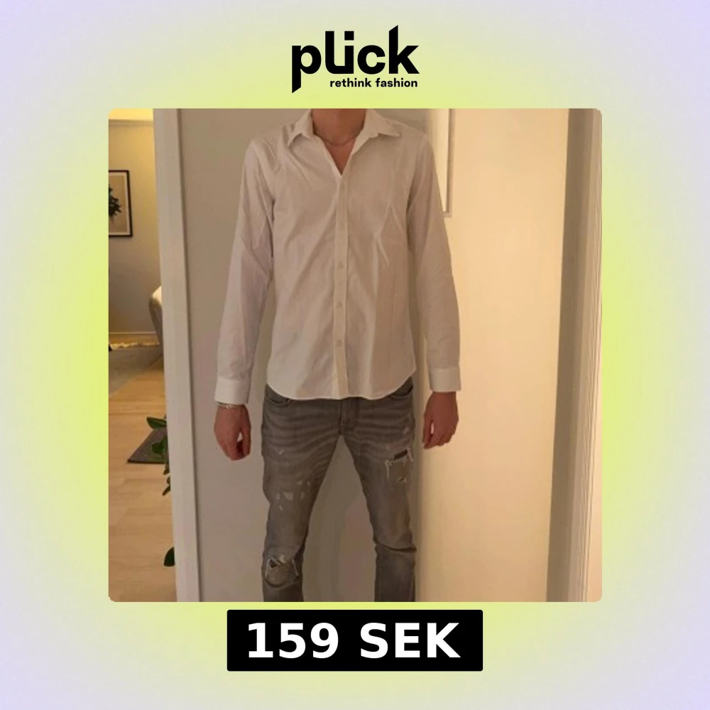 Klassisk vit skjorta från Bläck i storlek L med snygg tailored fit. Skjortan har lång ärm, krage och knappar framtill. Perfekt för dig som gillar stilrena och enkla plagg. Materialet är mjukt och känns som bomull, vilket gör den skön att bära hela dagen.