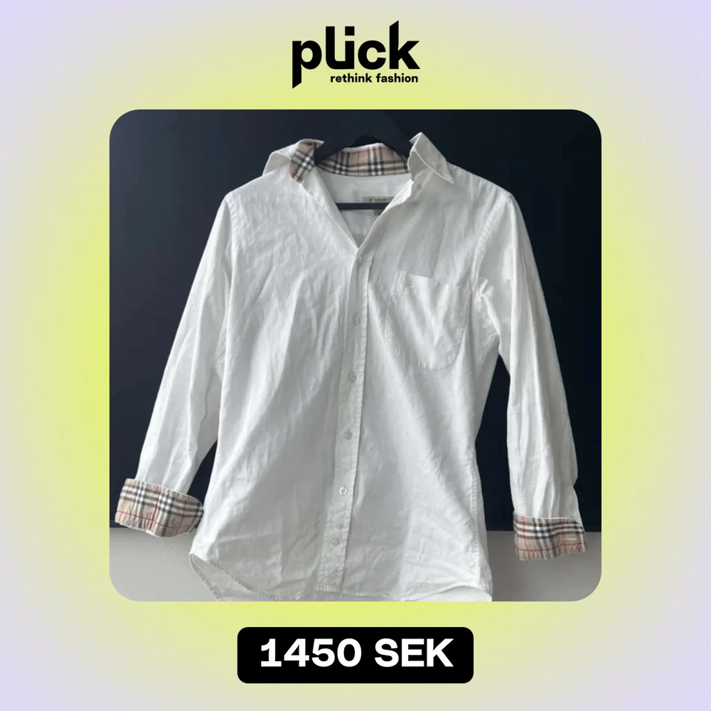 Säljer en stilren vit skjorta från Burberry i storlek XS. Skjortan har långa ärmar och klassiska Burberry-rutiga detaljer på insidan av kragen och ärmsluten. Mycket bra skick och bara att höra av sig vid frågor eller funderingar. Pris kan diskuteras!